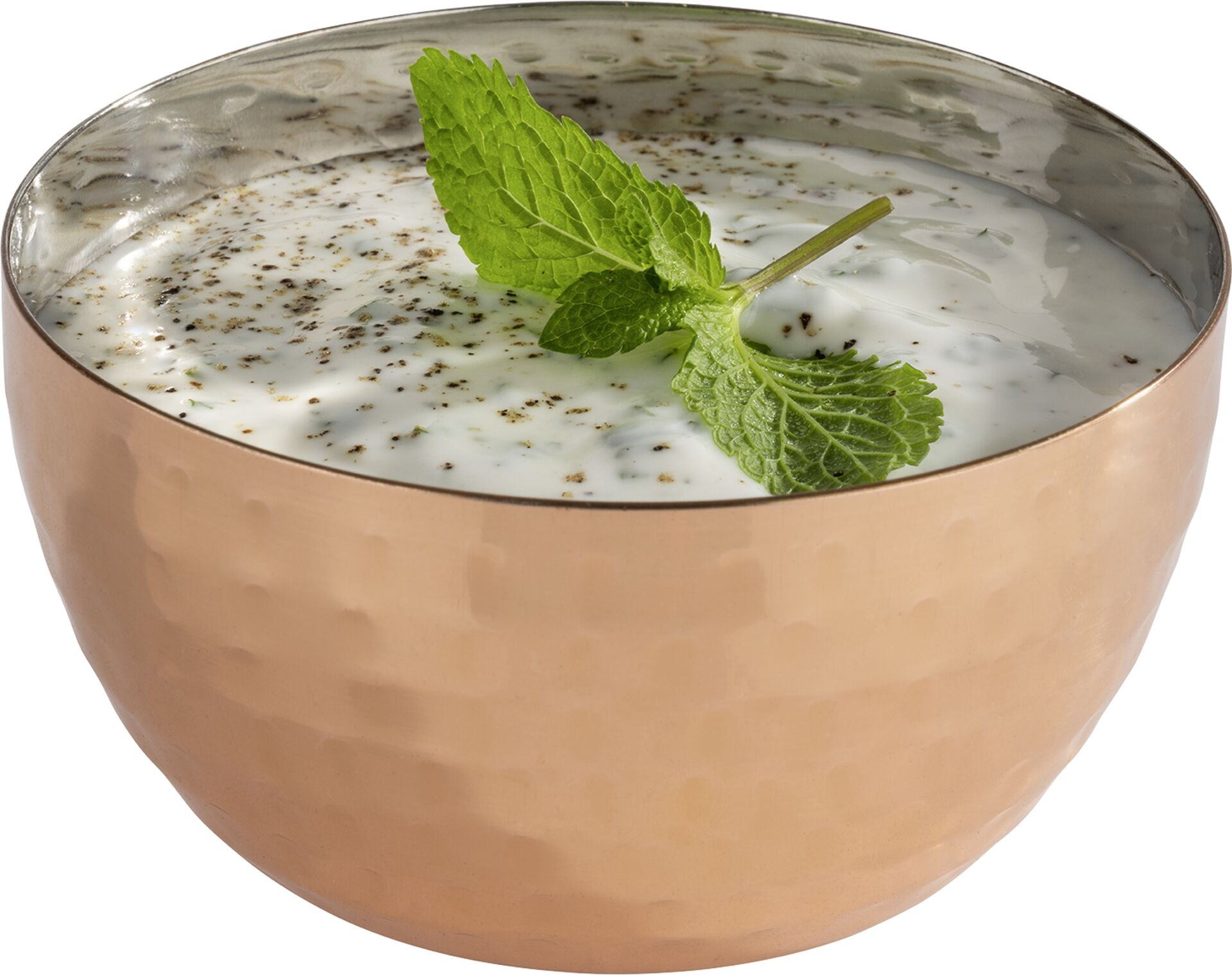 Edelstahl mit Kupferlook. Nicht spülmaschinengeeignet. Ausführung: rund Maße in cm: 9x5 Inhalt in ml: 200