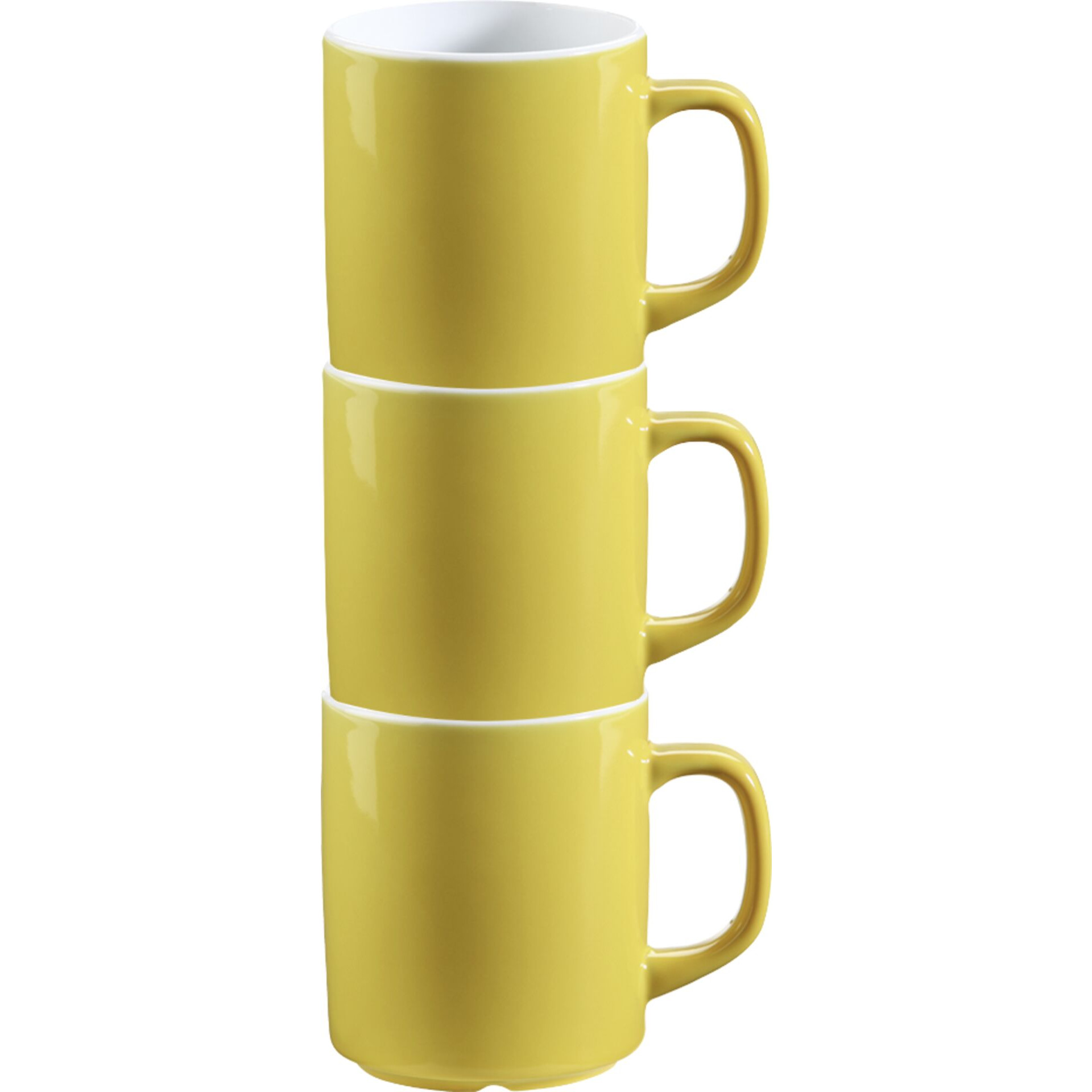 Ausführung: Kaffeebecher Inhalt/Maße: 0,3 L Farbe: gelb Porzellan in peppigen Farben. Stapelbar. Mischsortierung.