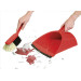 Kunststoff, rot. Garnitur bestehend aus Besen und Schaufel mit Gummilippe und extra großem Aufnahmebehälter - ideal zur Aufnahme von zerbrochenen Gläsern und ausgelaufenen Flüssigkeiten.