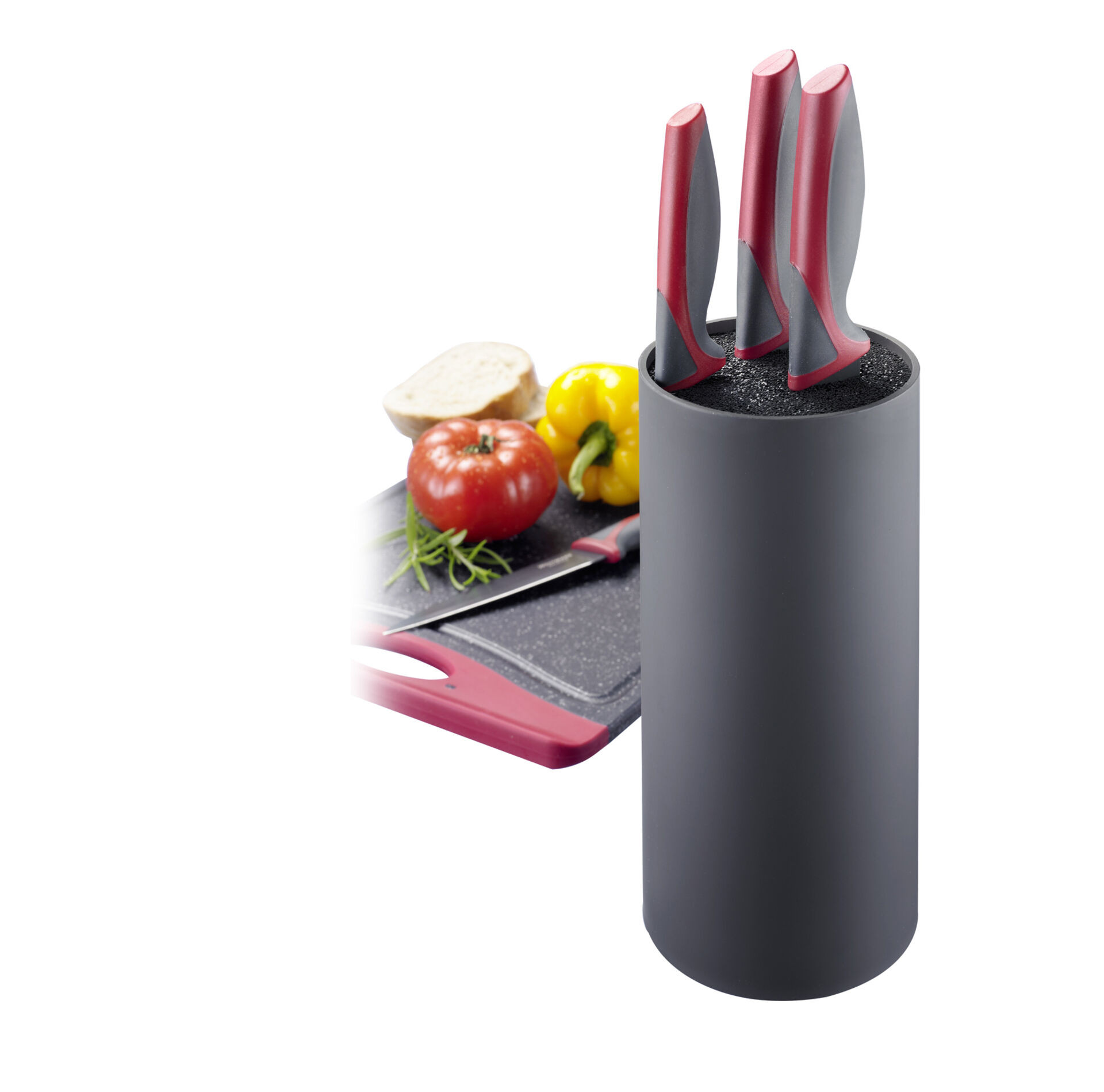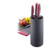 PP, TPE (thermoplastische Elastomere). Mit Kunststoffborsten (PET Polyethylenterephthalat). Der Einsatz ist herausnehmbar und kann abgespült oder in die Spülmaschine gegeben werden. Maximale Klingenlänge 8" = ca. 20,3 cm.